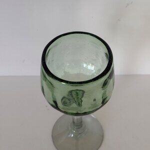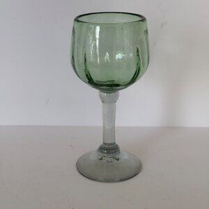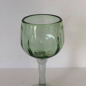 Vintage Mexican Green & Clear Handblown Wine Glass Goblet 8"