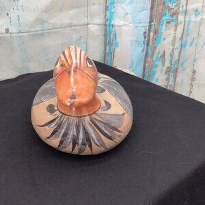 Elevate your space with this unique vintage Mexican hand-painted ceramic duck figurine. Its intricate folk art design adds cultural charm and character, making it a captivating centerpiece or accent piece.