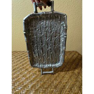 Vintage Mexican Handcrafted Aluminum Serving Tray With Handles Textured Bamboo