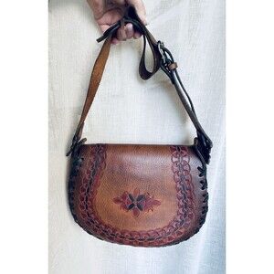 Vintage Mexican Leather Bag SIOUX Tooled Floral Boho Hippie Shoulder Crossbody