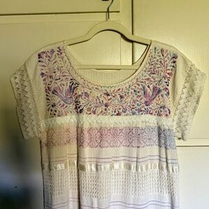 Vintage Mexican Pastel Embroidered Dress Bohemian