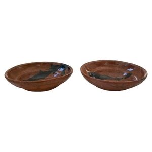 Vintage Mexican Pottery Brown Clay Bowl Set Chips Plate Rustic Farmhouse Platter