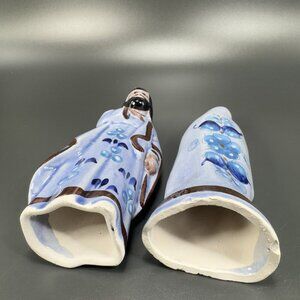 Vintage Mexican Pottery Hand Painted Blue Tonala Nativity Figurine Mary Joseph