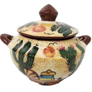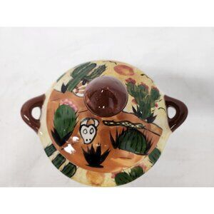 Vintage Mexican Pottery Handmade Ceramic Cactus Lidded Soup Tureen Serving Dish