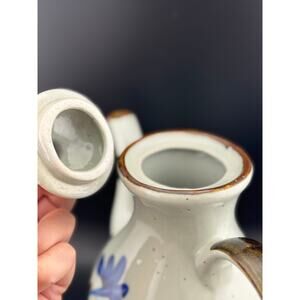 Beautiful Mexican pottery teapot. Grey with blue and brown glaze. 8.5" tall by 9.5" wide. Excellent condition.