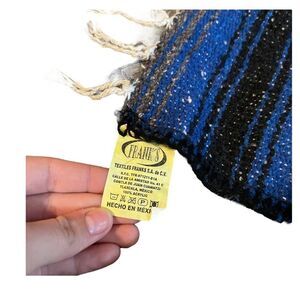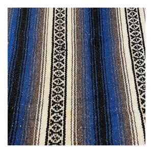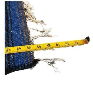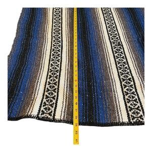 Vintage Mexican Sarape Blanket Rug Franks Textiles Southwest Striped Blue 39x61