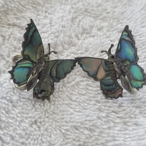 Vintage Mexican Silver Abalone Butterfly Brooch & Earring Set Signed JC 925 Gift