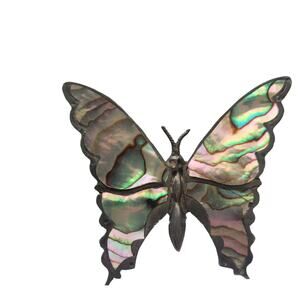 Vintage Mexican Silver Abalone Butterfly Brooch & Earring Set – Signed JC 925