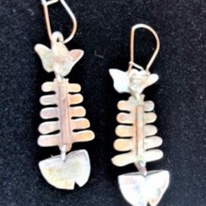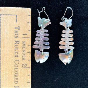 Vintage Mexican Silver Fish Skeleton Earrings
