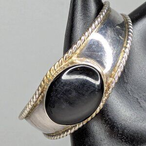Vintage Mexican Silver & Onyx Cuff Bracelet with Twist Accent One Size Fits Most