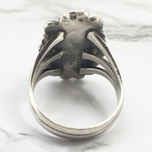Vintage Mexican Silver Red Oval Single Stone Ring & Screw Back Earrings Set