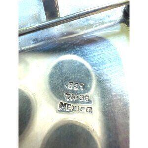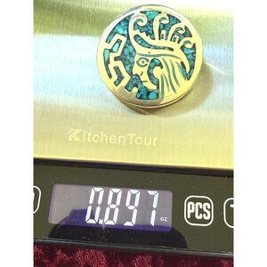 Vintage Mexican Sterling Silver & Turquoise Inlay Aztec Round Brooch Pendant