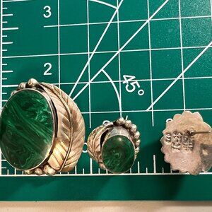 Vintage Mexican TAXCO TC-25 Sterling Silver & Malachite Brooch Post Earrings Se