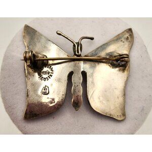 This beautiful vintage butterfly brooch, handcrafted in Mexico, features stunning abalone inlays set in sterling silver. A timeless piece of jewelry.