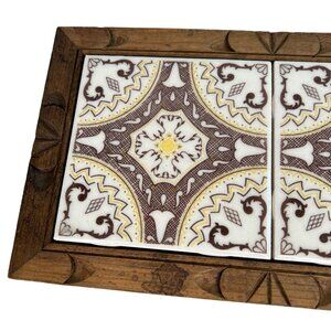 Vintage Mexican Tile Wood Framed Trivet Set Vintage MEXICO Folk Art TILE WOOD