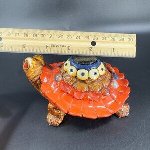 Vintage Mexican Turtle Figurine Resin With Stones Hand Crafted Figure Decor VTG