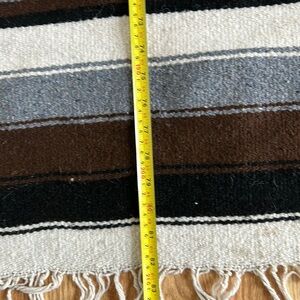 Vintage Mexican wool rug blanket eagle snake brown black stripe fringe boho82x47