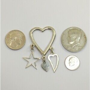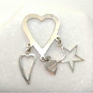 Vintage Mexico 925 Pendant Open Heart Dangle Charms Open Star and Hearts