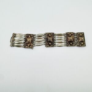 Vintage Mexico 925 Sterling Silver Panel Bracelet Handcrafted Boho Design