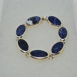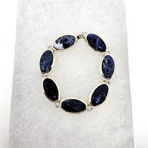 Vintage Mexico C-11 Sodalite Modernist Style 925 Sterling Silver Bracelet