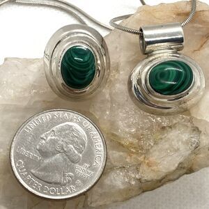 Vintage Mexico Green Malachite Stone 18'' Matching Necklace & Earrings Set 24g