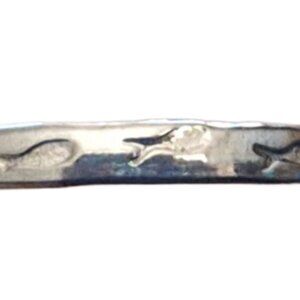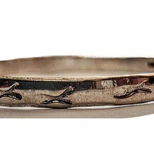 This nicely hand made bangle bracelet was made in Mexico. Fish have been impressed around circumference. I have seen many of the bangles from Mexico with the same fish impression. The bangle is hammered silver although not sure of the purity of silver since there is no 925 marking on it. 5.9” in circumference, 1.75” in diameter. Weights ½ ounce. Pre-owned in excellent condition. No bends or scraps. Interested, make an offer. From a smoke and pet hair free home.