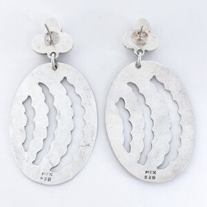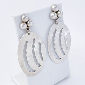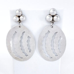 Vintage Mexico Sterling Silver 925 Cutout Oval Drop Statement Earrings