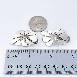 These vintage Mexican sterling silver clip-on earrings feature a bold floral cutout design with a modernist flair. Crafted from solid sterling silver, their openwork pattern adds an airy yet statement-making touch. A perfect accessory for lovers of artisan jewelry and timeless Mexican silver craftsmanship.