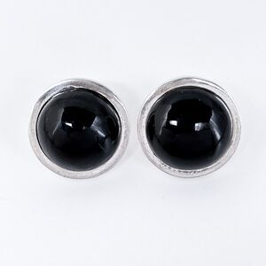 Title: Vintage Mexico Sterling Silver 925 Onyx Dome Earrings