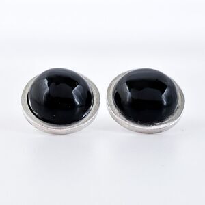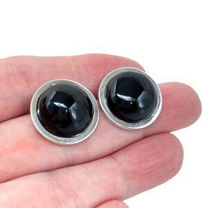 Vintage Mexico Sterling Silver 925 Onyx Dome Earrings