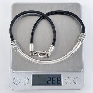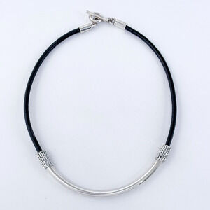 Title: Vintage Mexico Sterling Silver 925 Rubber Tubular Pendant Necklace 17"