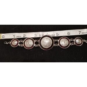 Vintage - Mexico Sterling Silver Red Inlay Sets 8" long 1.5" Round Largest - EUC