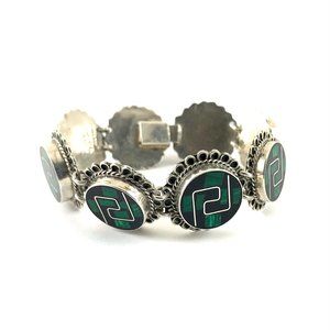 Vintage Mexico TO-68 Sterling Silver 925 Malachite Bracelet