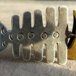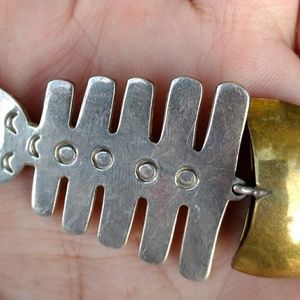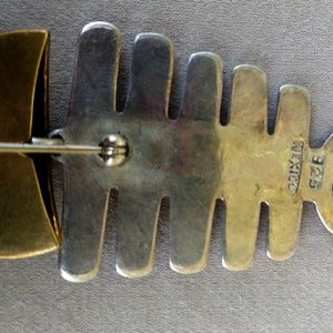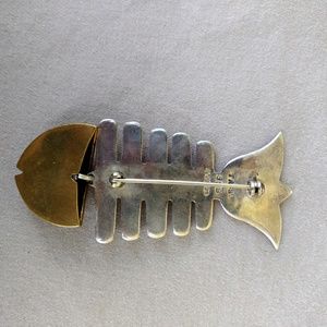 Vintage 925 body and brass head fish brooch. Beautiful vintage condition. Signed TR-91, 925 Mexico. Very rare and unique.