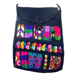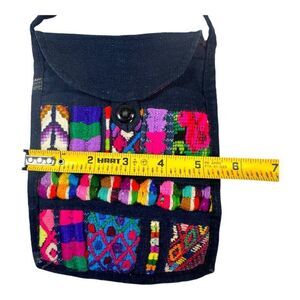 Vintage Mexico Embroidered Crossbody Miniature Bag Button Closure & Long Strap