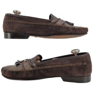 Vintage Mezlan Exotic Ostrich Suede Dress Shoes Mens 8.5M Tassel Slip-on Loafers