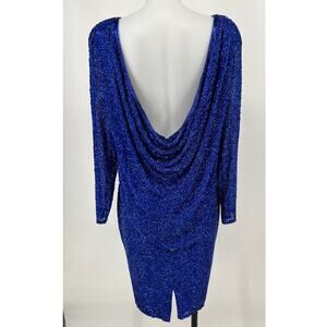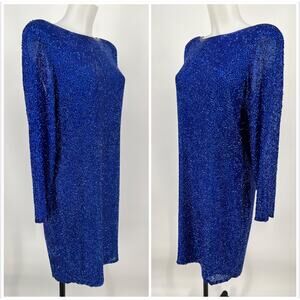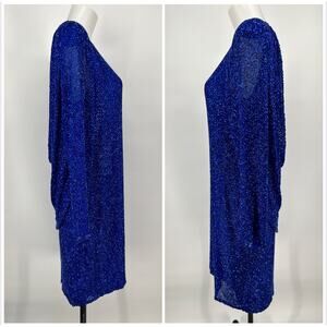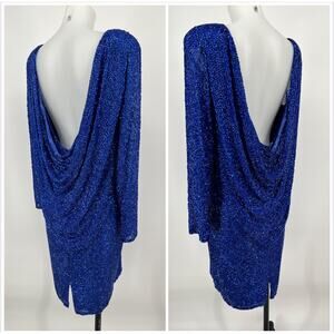 Vintage Mezza Luna by Modi Beaded Silk Dress Sz 10 Royal Blue Draped Back Formal
