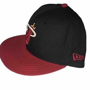 Vintage Miami Heat Hat Cap Retro Fitted Mens 7 1/2 Black Red New Era NBA HWC