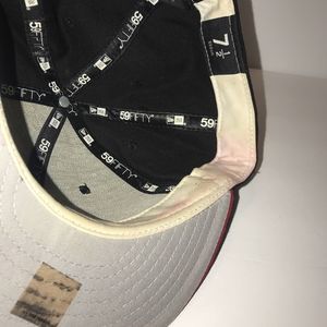 In Great condition, however inside of had in the white part has stains, the hat is professionally cleaned so its cosmetic