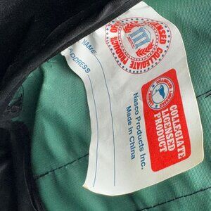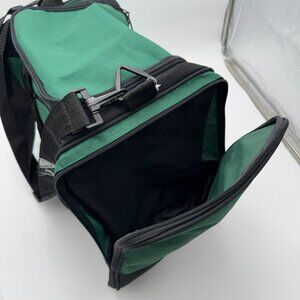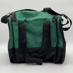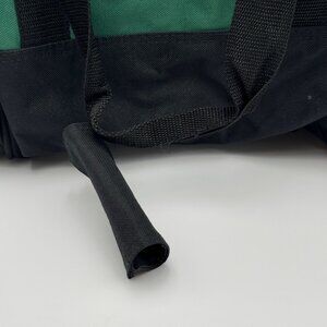 Repping the University of Miami never looked so throwback-fresh. This rare large duffel bag is all about vintage vibes with its green and black colorway and embroidered Sebastian the Ibis on front - upside down! Built with sturdy canvas, it's perfect for hauling gear or packing up for a quick weekend away.
