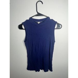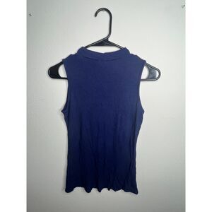 Elevate your wardrobe with this stylish vintage ribbed sleeveless tank top by Miami. Featuring a mock neck and a stretchy, fitted silhouette, this top is both classic and versatile. Made in the USA, this piece is perfect for layering or wearing alone. The deep navy blue color adds an elegant touch, making it suitable for casual or dressed-up outfits.