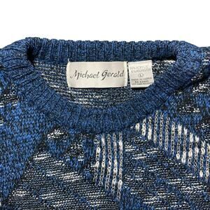 Vintage Michael Gerald Men's Knit Grandpa Crewneck Sweater Blue Black Size Large
