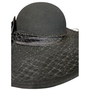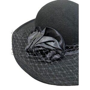 Vintage Michael Howard 100% Wool Black Hat With Satin Rose & Veil Detail Small