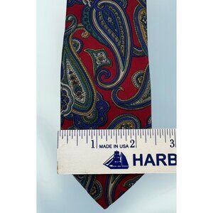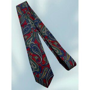 Vintage Michael James Red Blue Paisley Silk NeckTie 49” X 2 1/2” Nice Retro Tie