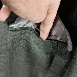 Enhance your wardrobe with this Michael Kors men's plaid checkered wool blazer. Crafted in a rich green hue, this size 38S jacket features a classic three-button closure, making it a versatile addition to your formal attire.