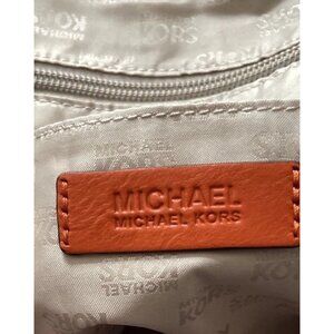 This Vintage Michael Kors Signature Brown & Orange Leather Strapped Shoulder bag from the Y2K era is a large tote style handbag perfect for a business occasion. Made of leather with brown hardware and an orange lining, this designer piece exudes classic style with inner pockets and dividers for organization. The multicolor exterior and signature Michael Kors branding make this bag a timeless accessory for any woman's wardrobe.
