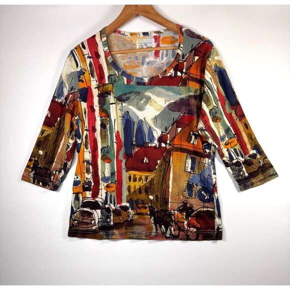 Vintage Michael Lau Top Womens Small Cotton Art Print City Scene Made in USA