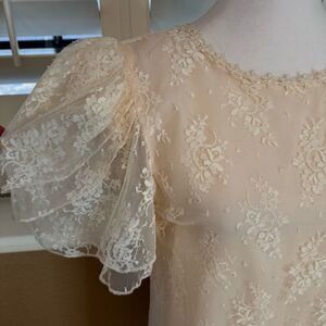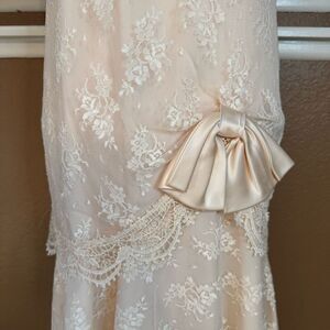 Vintage Michael Marcells Sz 10 Lace Bow Pearl Button Drape Midi Dress Pink Fairy
