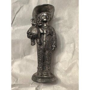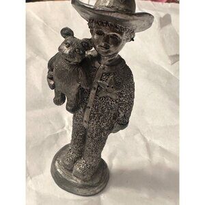 Vintage Michael Ricker Pewter Cowboy Sheriff Boy With Bear Figurine