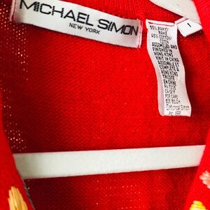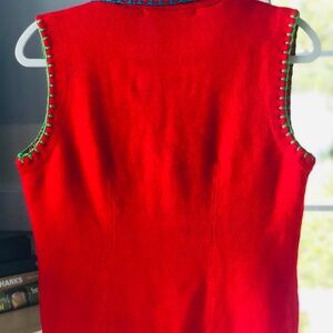 Beautiful vintage red Michael Simon embroidered vest. Size 1. Measurements: 20" from shoulder seam to hem and 19" across the bust. Vest is in excellent condition.